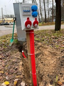 Uzstādam pievadkabeļus pie A/S Sadales tīkls uzskaites kastēm, nodrošinot elektrosadales uzņēmuma prasības.